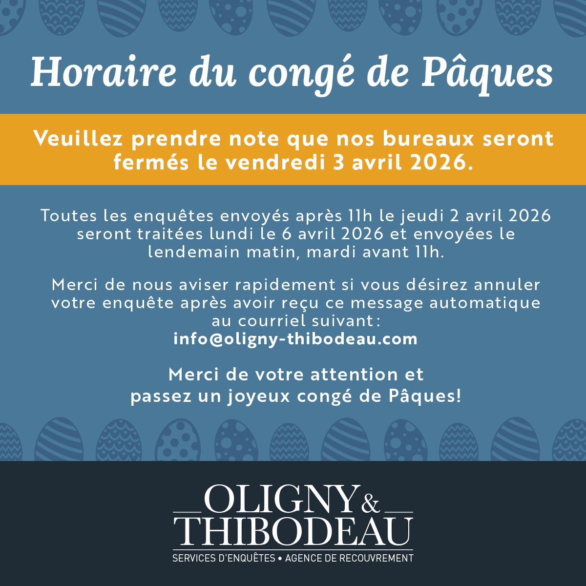Services d’Enquêtes Oligny & Thibodeau Inc. et l’Agence de Recouvrement Oligny & Thibodeau Inc. sont des entreprises qui se démarquent par leurs performances en affaires depuis plus de 30 ans et ne cessent de se faire valoir dans l’industrie des enquêtes et du recouvrement de mauvaises créances.